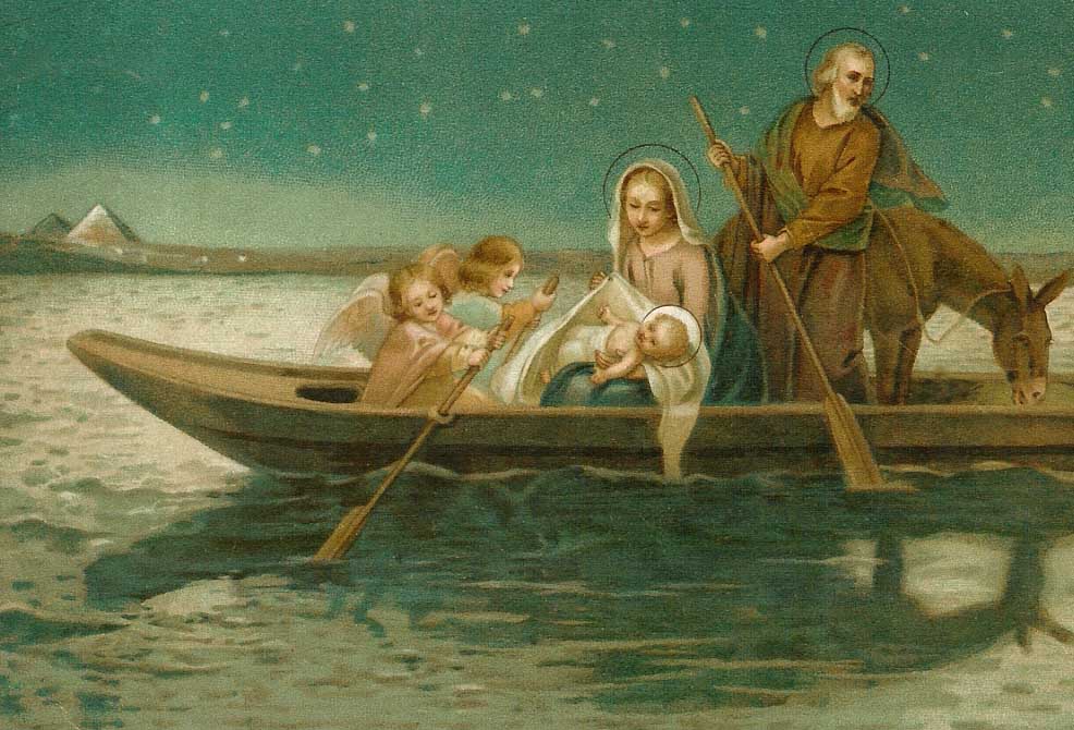 | In Bethlehem hört Josef im Traum von der Eifersucht des König Herodes und erhält durch einen Engel die Weisung zur Flucht nach Ägypten. Die Familie flieht mit der schon genesenden Maria. Wir wissen nicht sicher ob sich dieser Abzug so zugetragen hat. Es hätte allerdings der befohlene Kindermord durch König Herodes ohne die oft bezweifelte Flucht wenig , oder gar keinen Sinn gehabt. Bildbeschreibung : Eine ungewöhnliche Darstellung der Flucht zeigt die Hl Familie, wie sie auf einem Kahn nach Ägypten zieht. Die Flucht als vierte Aufstellung auf der Wörgler Kirchenkrippe wird mit Stolz ab den 20. Jänner gezeigt. Die Besonderheit ist die schöne Figurengruppe die von einen Engel mit weitem, wallenden Mantel, an den mordenden Söldnern des grausamen Königs vorbei geleitet wird. In den Hauskrippen wird „Die Flucht“ selten als Einzeldarstellung gezeigt. Vielmehr steht sie als davoneilende Gruppe im hinteren Hirtenfeld, wo meistens durch einen gemalten Weg im Hintergrund die Absicht voll zur Geltung kommt. |