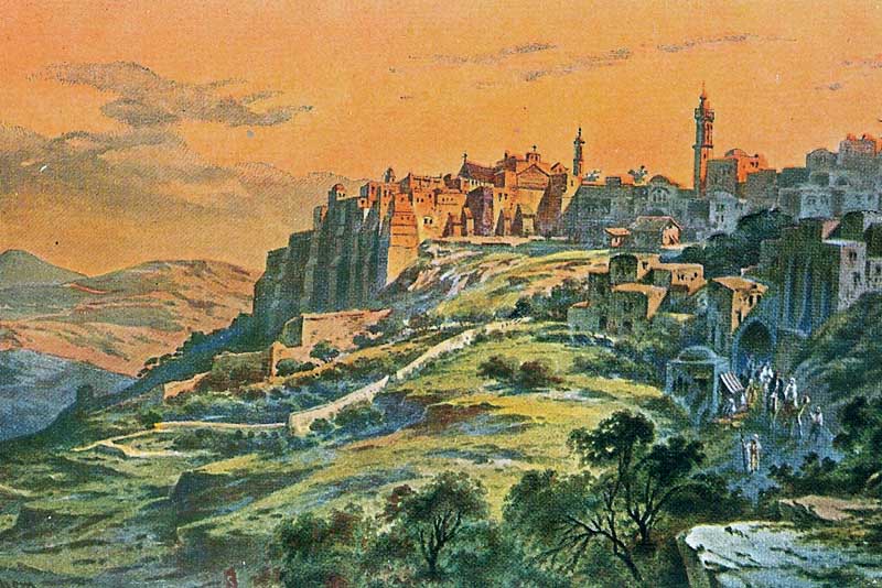Die erste Erwähnung Betlehems in der Bibel findet sich in Gen 35,19, wo es heißt, dass Jakobs geliebte Frau Rahel „an der Straße nach Efrata, das jetzt Betlehem heißt“, begraben wurde. Nach der Eroberung Kanaans durch die israelitischen Stämme fiel Betlehem dem Stamm Juda zu. Auch das Geschehen aus dem Buch Rut spielt sich zu einem großen Teil in Betlehem ab und sowohl Ruts Schwiegervater Elimelech, wie auch ihr späterer Mann Boas kamen aus diesem Ort. Betlehem war nach 1 Sam 16,1 der Herkunftsort Davids, wo auch der erwartete Messias als Sohn Davids zur Welt kommen sollte. In diesem Vers wird es als „Betlehem-Efrata“ bezeichnet, um es von einem anderen Ort mit Namen Betlehem zu unterscheiden, der im Stammesgebiet von Sebulon, ca. 11 km westnordwestlich von Nazaret, lag. Nach Matthäus 2,1 und Lukas 2,4 -11 ist Jesus Christus in Betlehem geboren worden. Die wahrscheinlich genaue Lage in einer Höhle, die die Christen als Geburtsstätte Jesu ansehen und über die sich seit dem Jahr 333 die Geburtskirche erhebt, wird schon ab dem 2. Jahrhundert verehrt. Durch den Besuch orientalischer Magier in Jerusalem wurde König Herodes auf das Kind aufmerksam und versuchte es umzubringen, indem er in Betlehem und Umgebung alle männlichen Kinder im Alter von bis zu zwei Jahren töten ließ. Umstritten ist, ob Betlehem tatsächlich der Geburtsort Jesu ist. Vielfach wird argumentiert, es handele sich hierbei, ebenso wie beim Kindermord des Herodes, um Legendenbildungen, die die königliche Abstammung Jesu unterstreichen sollen. Es gibt aber ebenso namhafte Historiker, die die Schilderungen im Lukasevangelium für glaubhaft und historisch wahrscheinlich halten. |