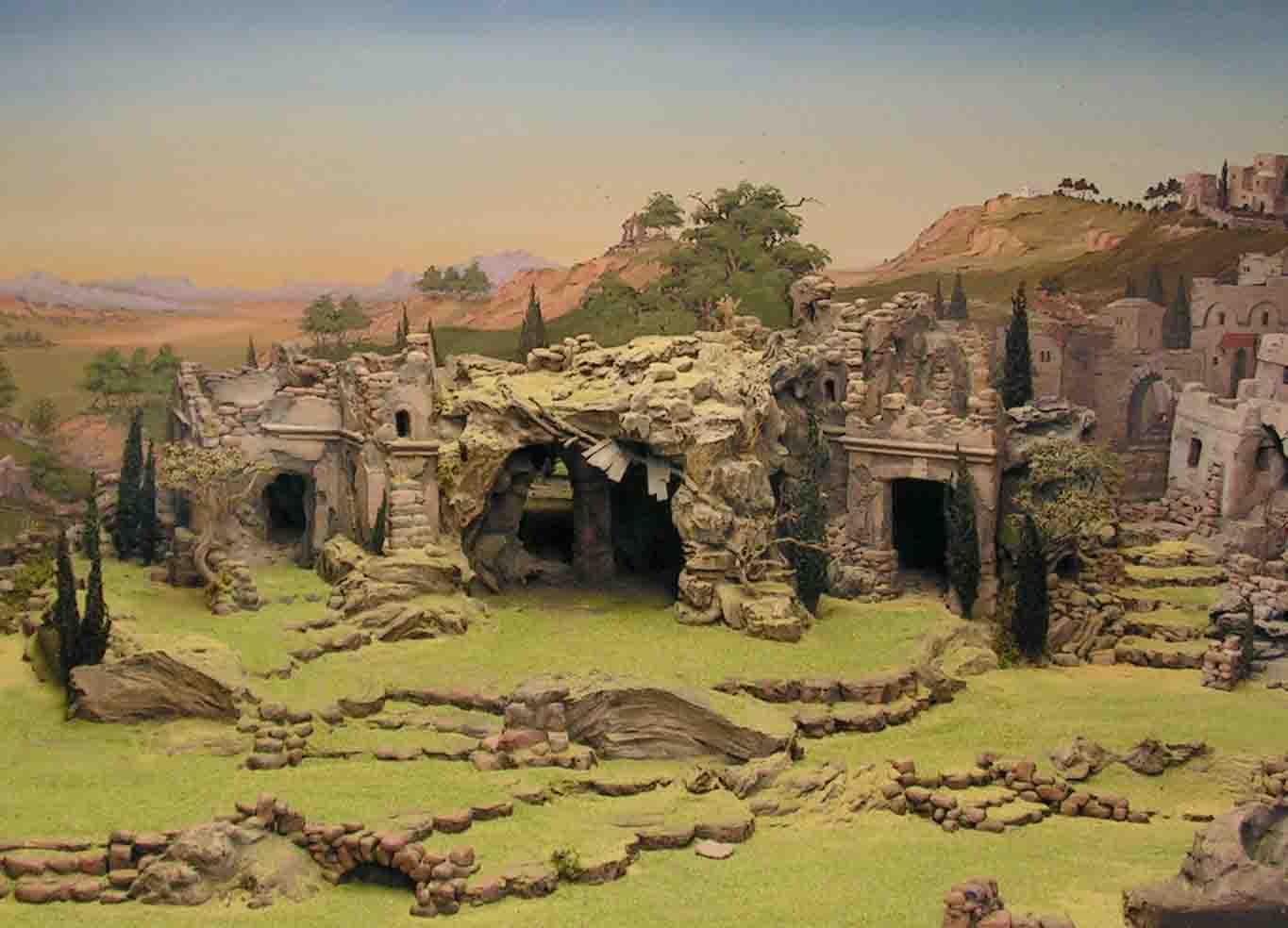 1. ART – ORT – MASS : Bevor man mit dem Bau einer Krippe beginnt, werden Krippenart, Aufstellungsort und Größe festgelegt 2. FIGURENGRÖSSE: Steht die Figurengröße fest, wird der gesamte Bau der Krippe danach ausgerichtet. 3. SKIZZE – PLAN – EINTEILUNG : Nach dem Skizzieren des Krippenmotivs folgt die Planung, die alle wichtigen Bauelemente einschließt 4. WERKZEUG – MATERIAL : Vor Beginn der Arbeit wird Arbeitsplatz, Werkzeug und Baumaterial sorgfältigst vorbereitet . 5. LEIM – SCHRAUBEN : Im Krippenbau werden tragende Bauteile stets geleimt und geschraubt. Nur kleine, nichttragende Stücke werden genagelt. 6. GEWICHT – HOHLRÄUME : Stets wird geachtet, dass die Krippe kompakt und trotzdem leicht gebaut wird. Nicht Schaumstoffe, sondern gebaute Hohlräume sollen zum Ziel führen. 7. WENIGER IST OFT MEHR : Nicht die Anzahl der Bauten sind auf einer Krippe wichtig, sondern die raffinierte Anordnung weniger Gebäude machen einen Stadtteil attraktiv. 8. GRÖSSEN – VERHÄLTNIS : Krippenbauteile stehen ständig zueinander im Größenvergleich. Der Krippenmeter hilft dabei. 9. PERSPEKTIVE – TIEFENWIRKUNG : Man spricht von Perspektive, wenn sich mit zunehmender Krippentiefe Landschaft und Bauten verkleinern und dadurch entfernen. 10. KITSCH - SCHNÖRKEL : Der Krippenfreund soll stets um die Würde der Krippe bemüht sein und keine unpassenden Schnörkel und Verzierungen zulassen. |