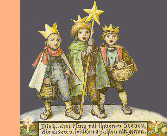 Überall in unserem Land haben sich in den letzten Jahren am Dreikönigstag Sternsingergruppen gebildet, die ein altes Brauchtum mit neuem Gehalt weiterführen. Darin spielt das Tragen eines selbstgefertigten großen Sterns eine besonders bedeutsame Rolle. „Überall im Land sammeln Sternsinger für Notleidende in aller Welt“ Auch die alten Dreikönigslieder leben wieder auf. Da es sich dabei ja um ein altes Heischespiel handelt, d.h. um das Sammeln freiwilliger Gaben, hat man heute Sternsinger häufig in den Dienst der sozialen Hilfe gestellt. Gesammelt wird für die Armen und Kranken, für die Weisen, und die Notleidenden in aller Welt. |